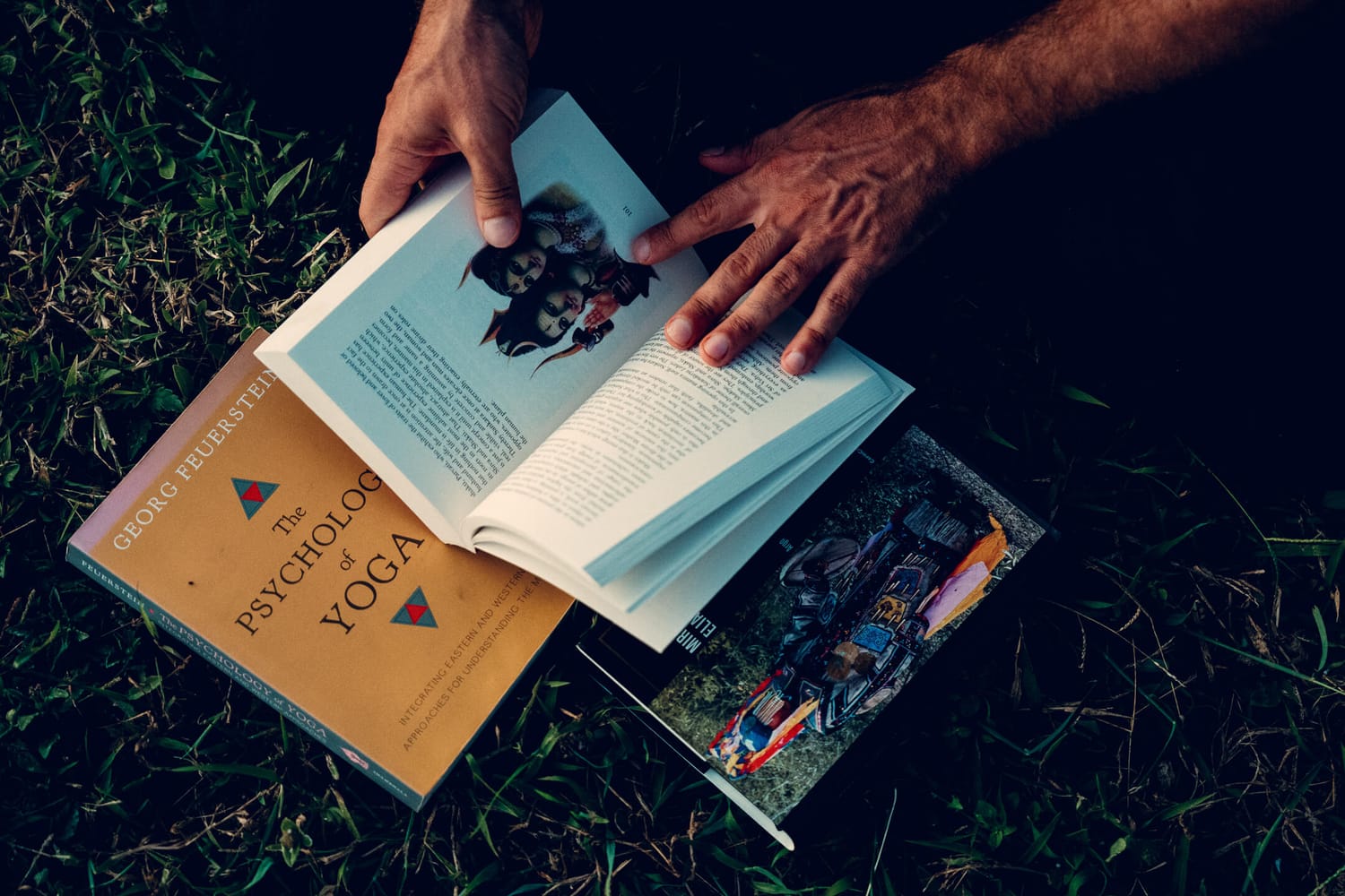 Dream work and active imagination following Robert Johnson's methodology. Jungian archetypes and mythology as functional maps of the psyche. The chakra system as a structure of consciousness rather than abstract energy theory. Tantric texts including Hatha Yoga Pradipika, Gheranda Samhita and Kularnava Tantra as technical references. Mantra initiation given at the right time and in the right context. Vedic astrology readings by Kristýna as an additional map of the terrain.